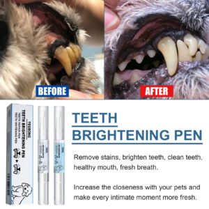 Our pet teeth whitening pen contains sodium bicarbonate and sorbitol. It can remove stains, brighten teeth, clean teeth, promote oral health, and freshen breath. It enhances bonding with your pet, making every intimate moment fresher. The usage is very simple: 1. Twist the brush to dispense the paste; 2. Apply it to the tooth surface; 3. Try to restrain your pet from licking it